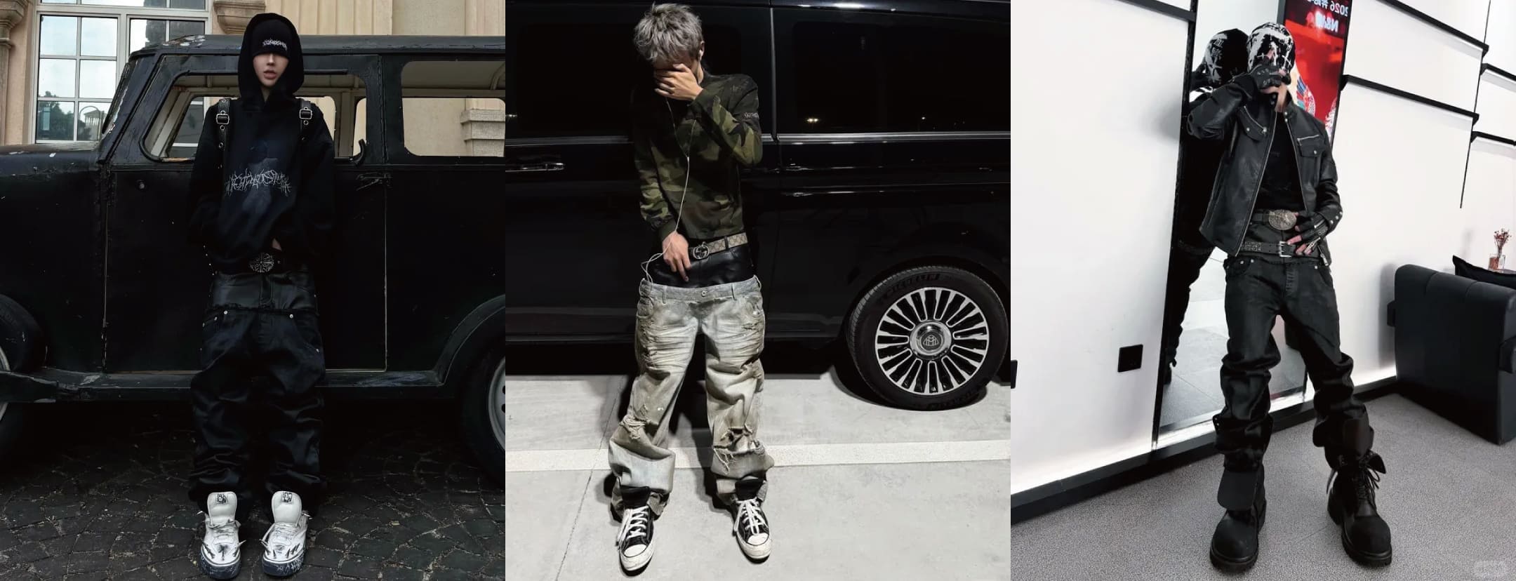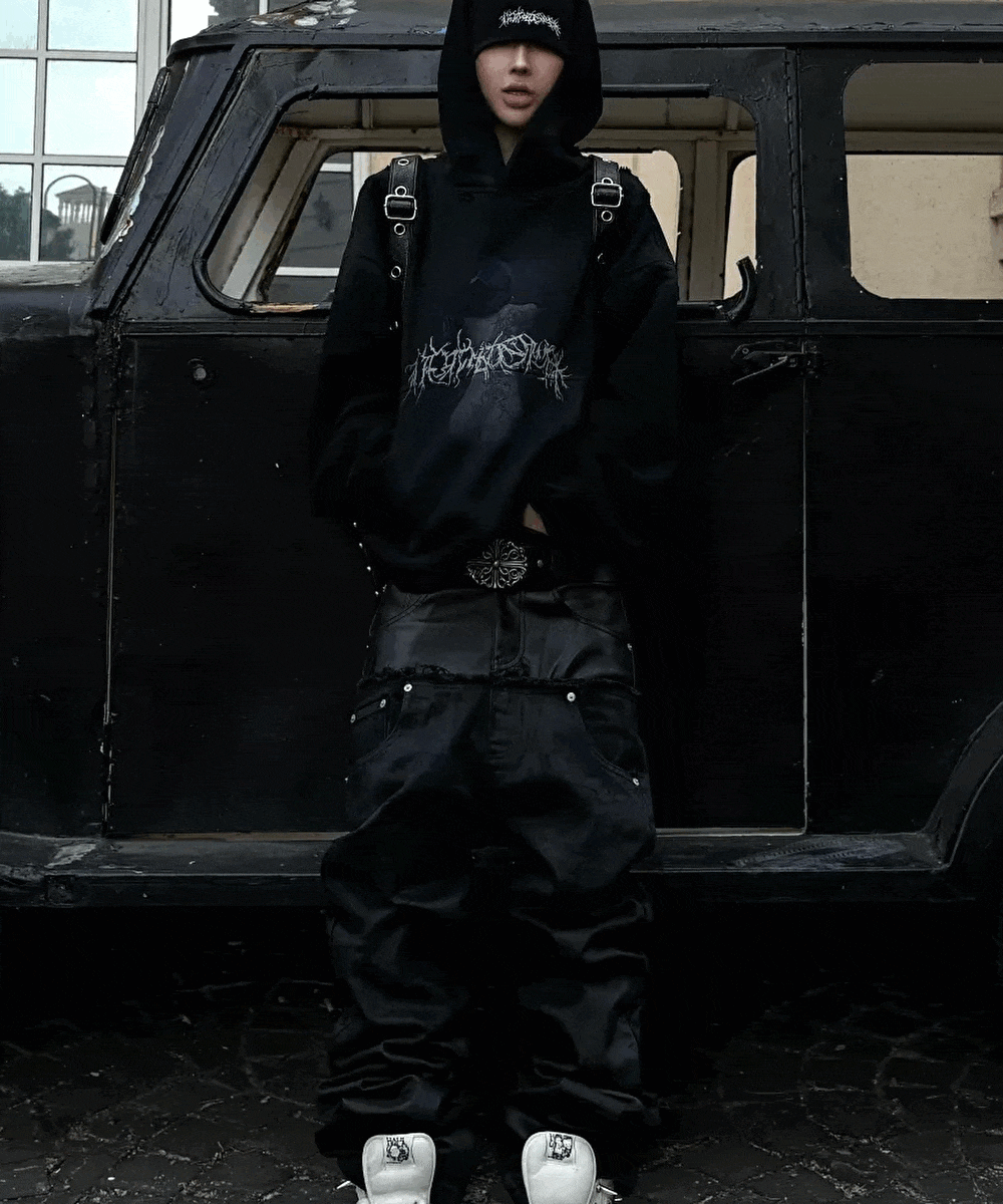 GOJOYJINNIHand Painted Wax Silver Powder Coated Straight Leg Wide Leg Lumberjack Pants