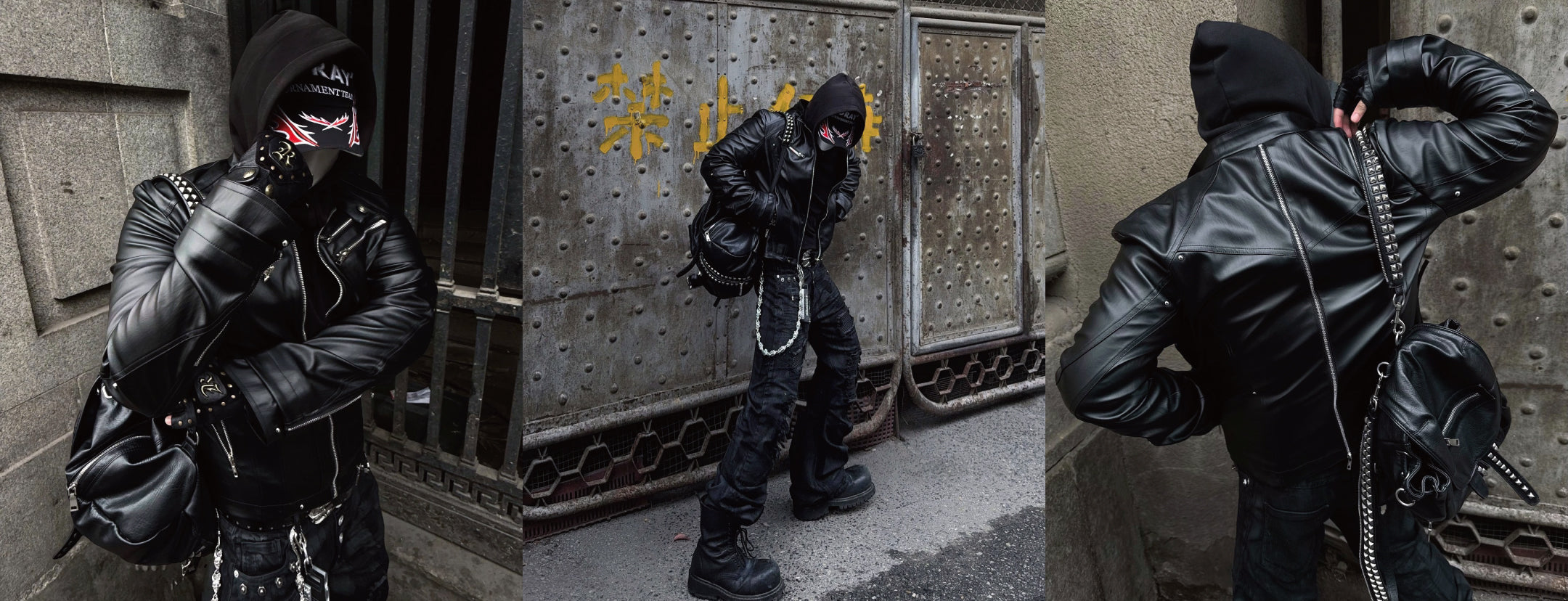 no E mosenVoid Douoble Zipper Adjustable Rock and Roll Leather Biker Jacket