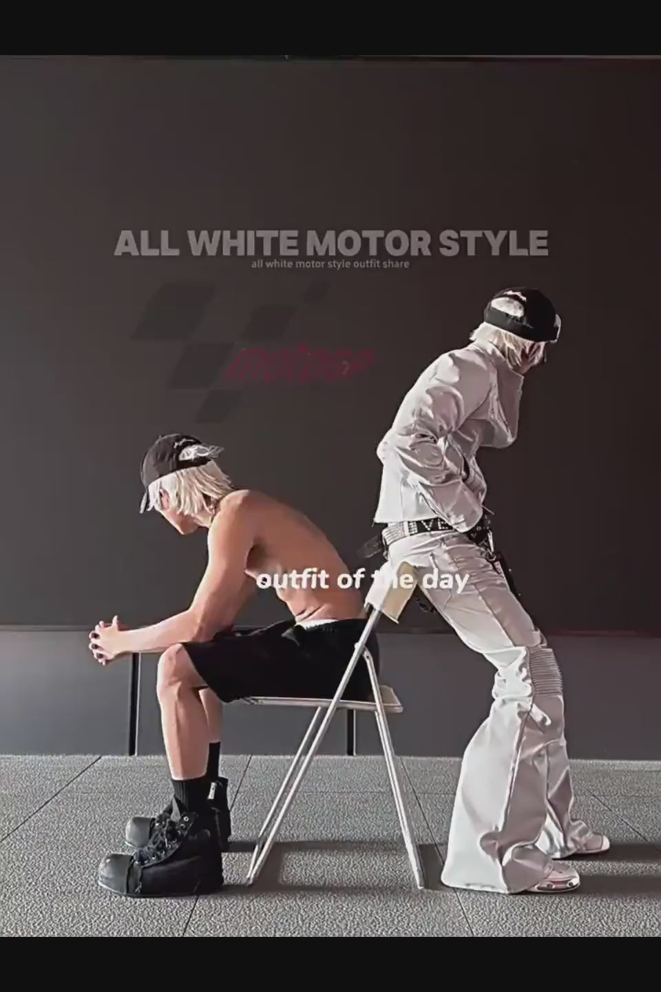 Cyber-Punk Accent: 足元に 「RHIME - Orbion | Fluoro Green」 を投入。フレアの裾から覗くネオンカラーが、重厚なアーマーデザインに現代的なデジタル・ノイズを加え、2026SSらしいサイバースタイルへと昇華させます。