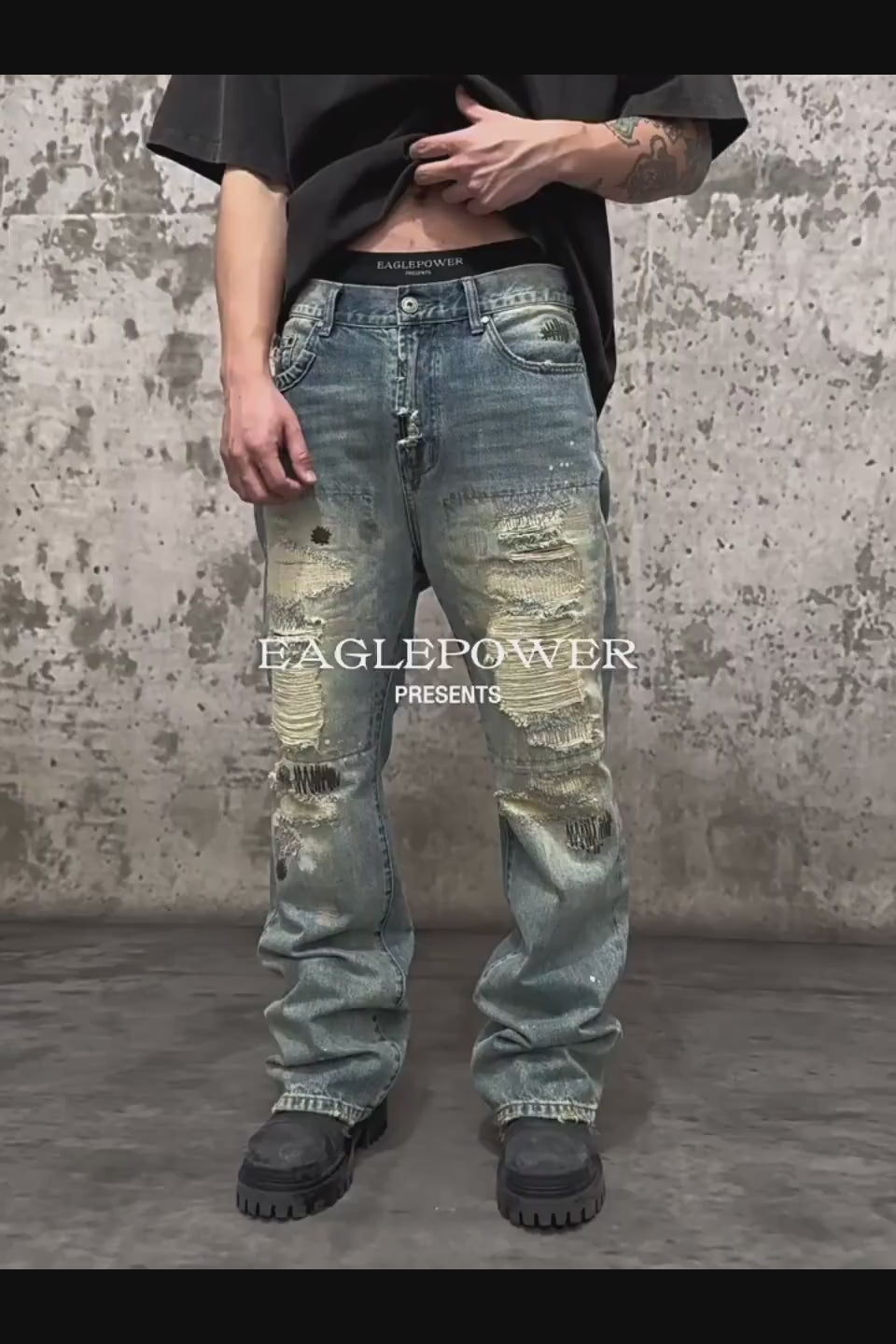 EPOWER / ダメージデニム / クラッシュジーンズ / ストリート / ヴィンテージウォッシュ